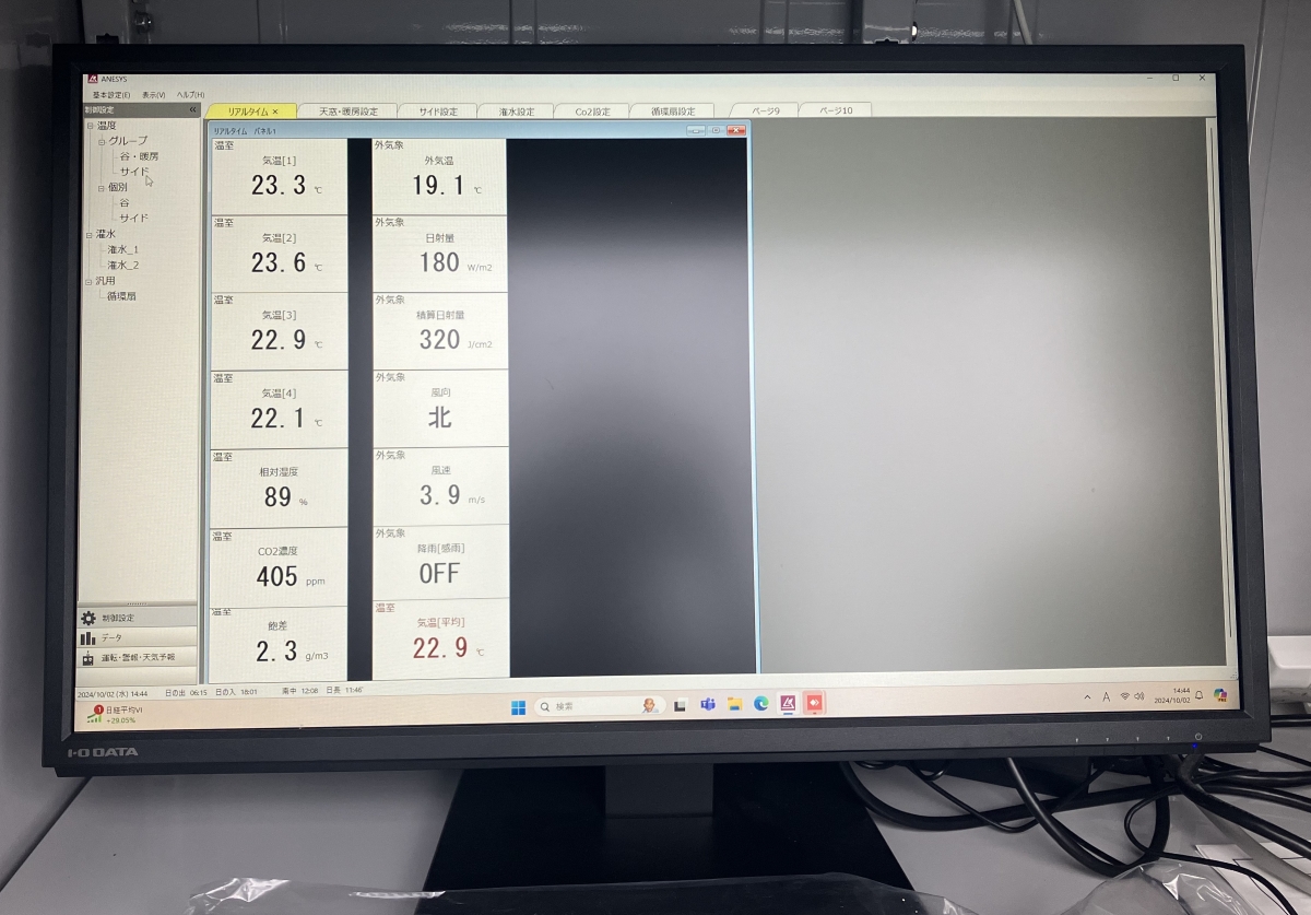 アネシスQ2600は最大96点の制御出力と最大72点のセンサー入力があり、1台で多くの環境制御機を動作をさせることができ温度センサーや雨センサーなど基本的なもの以外にも作物の萎れの計測や培地や果実の重量を計測するセンサーを取付けることも可能です。