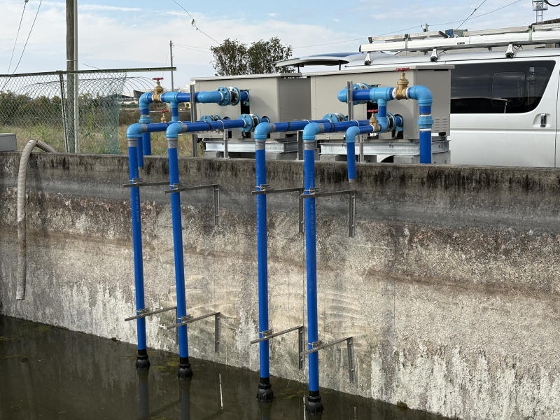 水稲のスマート農業実証試験の為に、給水ポンプ・パイプライン設備 及び ㈱クボタケミックス製品 ほ場水管理システム「WATARAS」の電動アクチュエーター設備工事の施工対応をしました。