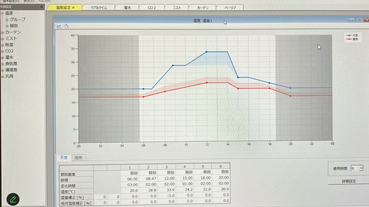 これまで経験や勘に頼って行っていた日常のハウス管理における微調整を「補正制御」という仕組みであらかじめ条件を設定しておくことでご自身で換気の開閉幅などを調整するのに近い制御が可能になります。